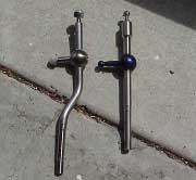 Here we can see the stock shifter next to the B&M. This is an old picture. The B&M now ships with the plastic caps shown on the stock shifter. Also note that that in addition to being shorter the B&M lacks the kink in the shaft of the original as discussed earlier.