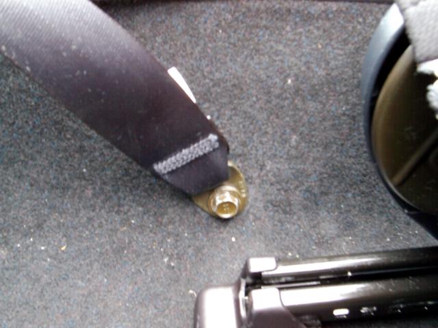 2. Using a 13mm socket, undo the lower seat belt mounting bolts behind the seats.
