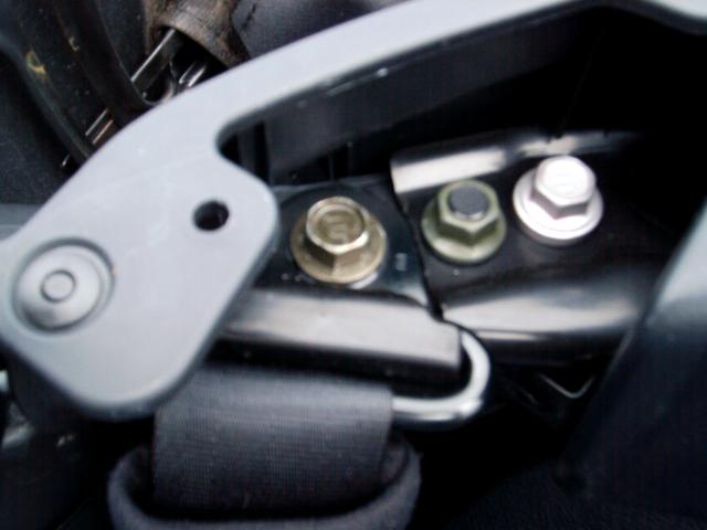 Align the netz bar over the revealed hole, place the supplied washer on top then the seat belt bracket and finally place the bolt and washers you removed through them all and semi tighten.