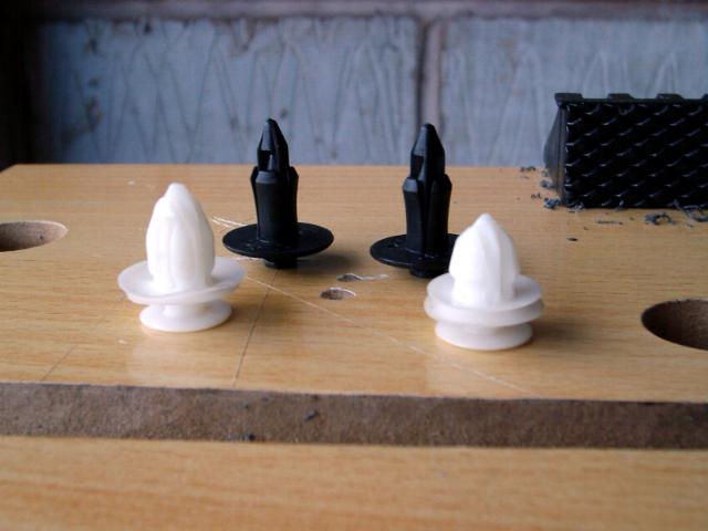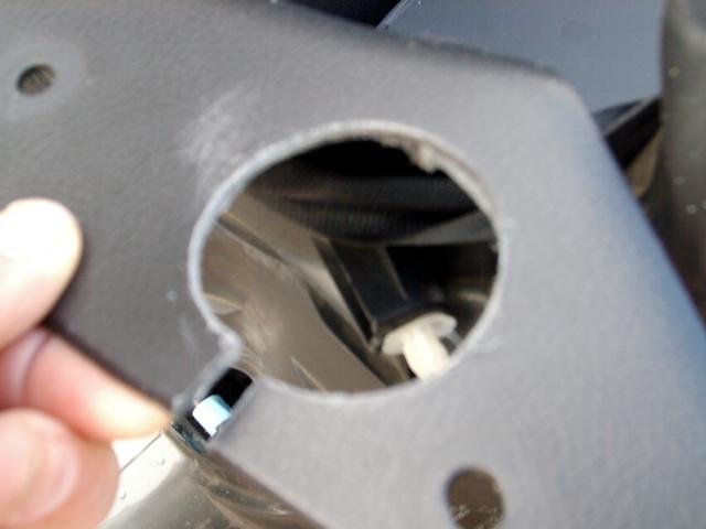 You can now bend the cut on the plastic panel at the hole to allow you to slip it over the style bar, if the two stud holes align and the panel clicks back on, fantastic, if not look and see which part of the hole needs to be enlarged. Simply pull it back off the style bar and carefully sand it by hand to get a good fit.