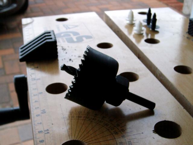 Drill and 45mm hole saw. I strongly suggest you use a good quality hole saw, i used a cheapo from my drill bit kit and although it cut the first hole perfectly, it chewed the second hole due to being blunt.
