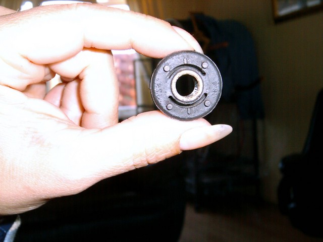 This can be tricky, i found the best way was to push a slim flat blade screwdriver through the rubber then lever the bushing out.