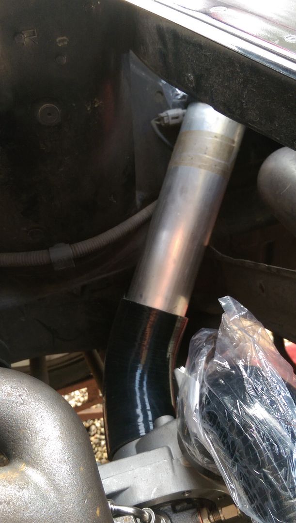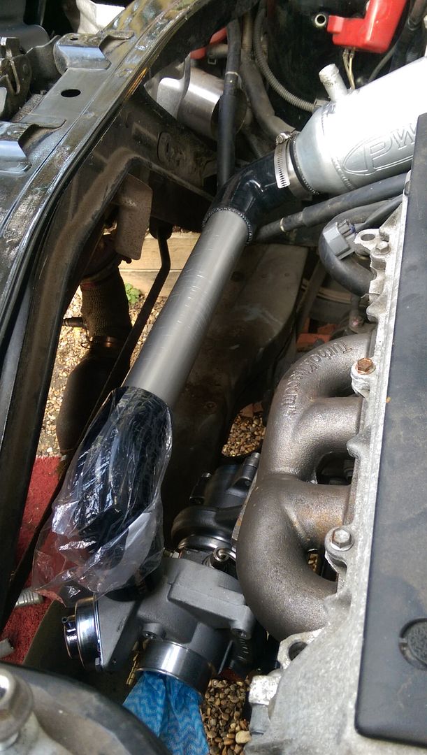 Another 1/2 day spent on the yesterday. Finished and fitted the downpipe, wrapped and sprayed it to try and manage the heat.