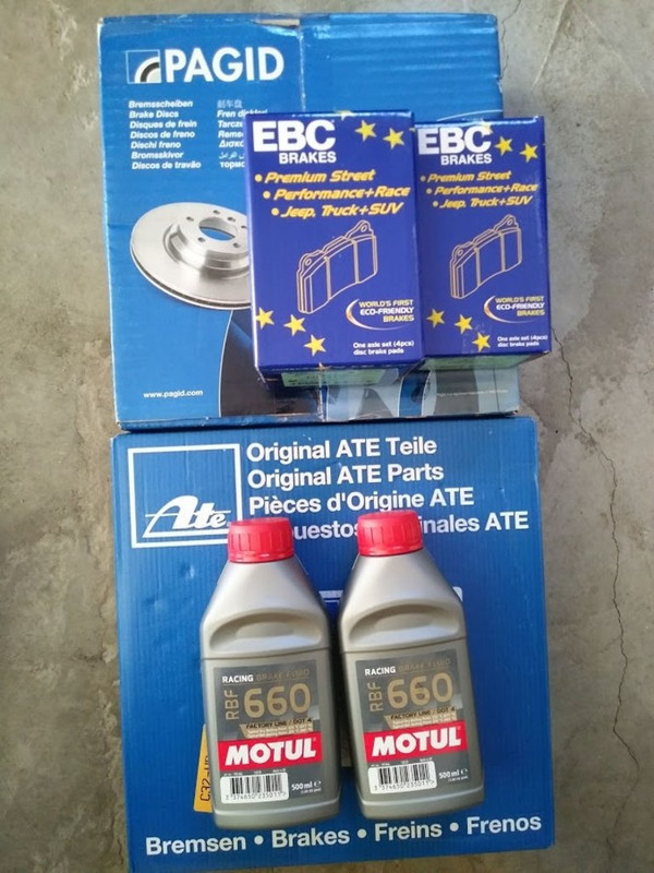 Also ordered brake bits, should be all done with the swap. EBC green stuff, ATE power front and pagid rear discs, braided brake lines, rbf 660 brake fluid.