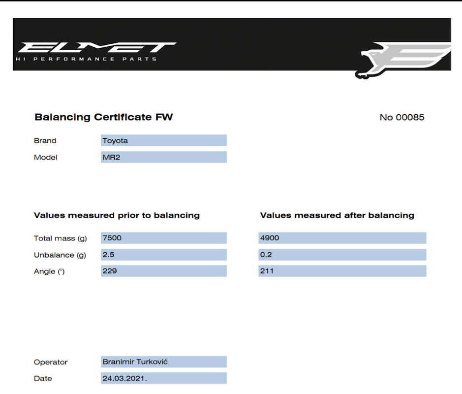 Here is a balancing report of my stock flywheel - my friend did a good job. highly recommended. Here is his business page https://elmet.hr/automoto%20performance%20tuning%20eng.html