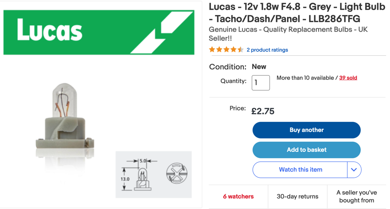 One of my heater control bulbs had blown, I phoned my local Mr T for a replacement, they would have to order me one, and would take around a week, cost was just under £10
