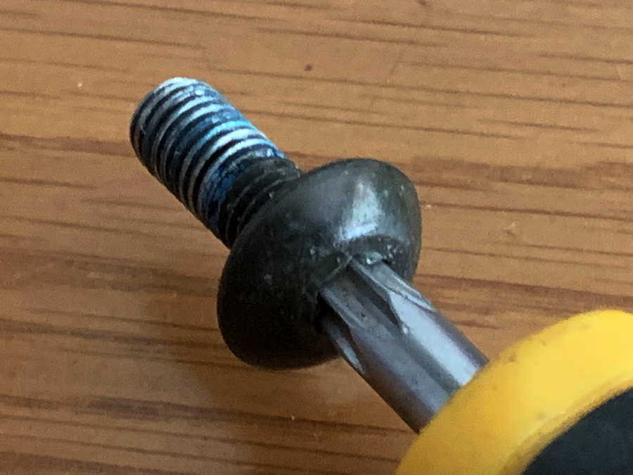 The lower of the two bolts came off OK with the help of an extension bar, but the top one would not budge and  I managed tov round off the Torx head