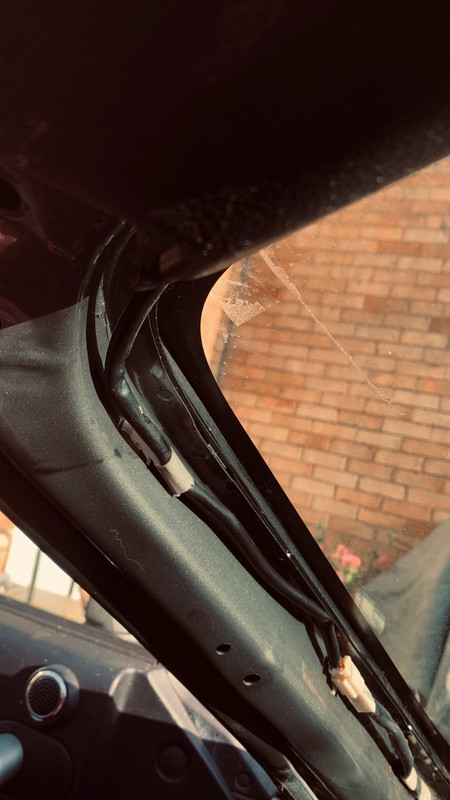 This afternoon in preparation of fitting my DVR camera on the windscreen I was attempting  to take off the two roof hinges that also hold the plastic screen surround