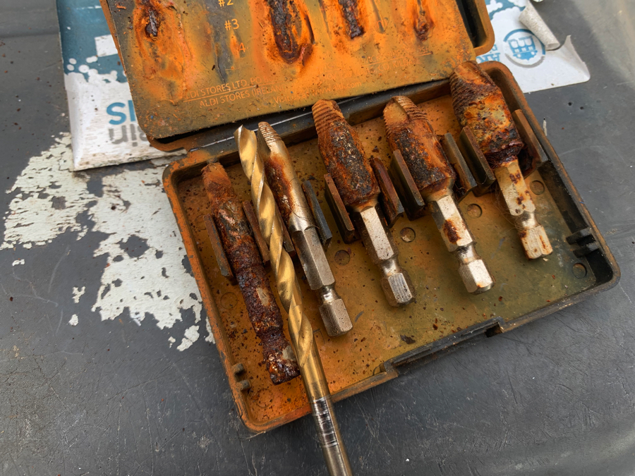I decided to have a go at drilling out the bolts, in the back of my shed I came across these things that help getting out drilled bolts, as you can see these haven't seen the light of day for years