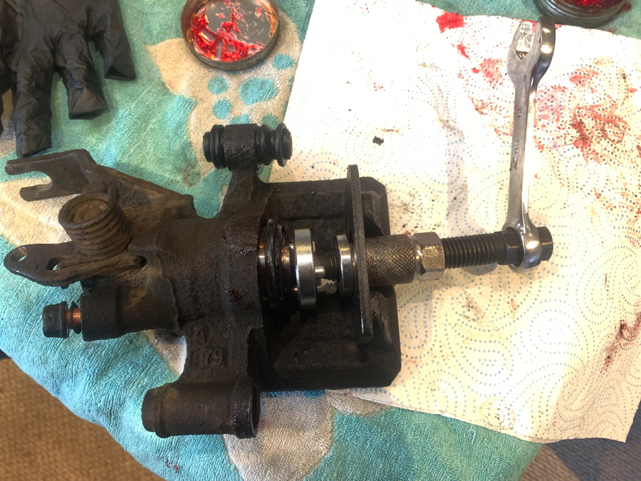 Only snag I had was when rewinding the piston on the second caliper, I must have caught the rubber seal as it started to weep oil