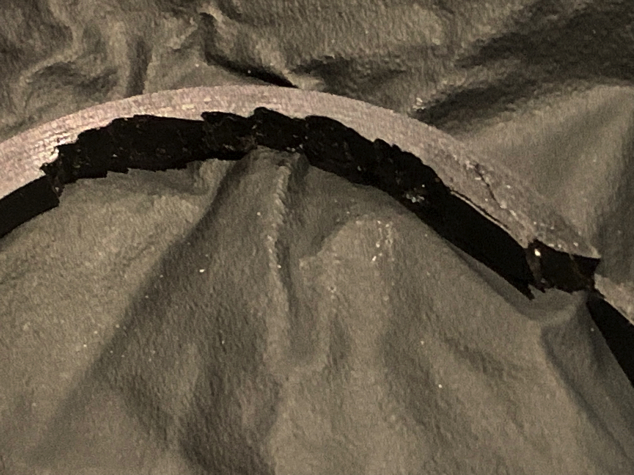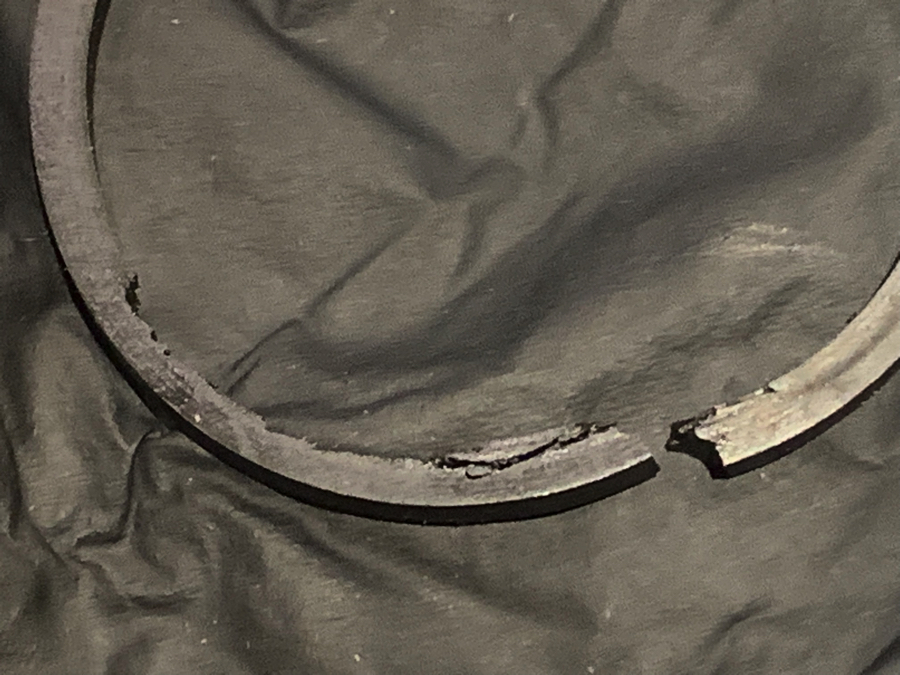 Looks like the mechanic didn't take too much care when fitting the piston in to it or was already damaged before fitting