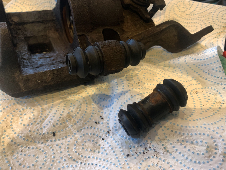 now you mention it, when I took out the actual rubber seal ring it came out with ease and it was already sapped and on closed inspection I noticed it had been what looked like chewed, Mr T replaced the pads back around 2010