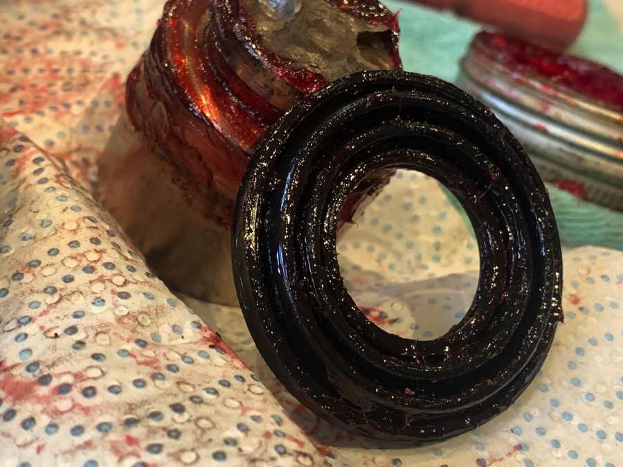 Pulling the cover back to expose some of the piston and lubricating that,  I pushed/ rotated the piston past the caliper seal.